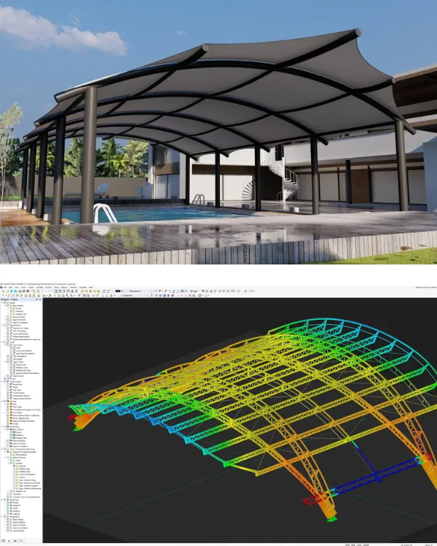 Form-Finding: Through an iterative process, our designers craft the optimal membrane shape, balancing aesthetics and functionality to achieve the perfect form.