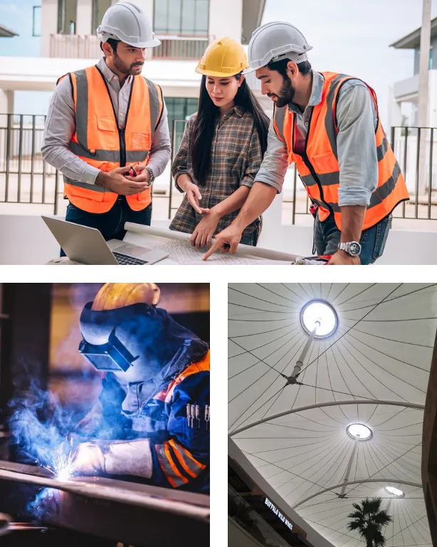 Regular inspections by project managers, supervisors, and local authorities to ensure that the construction complies with codes and standards. As the India’s leading manufacturer in lightweight architecture, we craft stunning tensile membrane structures and modern building designs with unmatched expertise. Our project management approach leverages world-class engineering facilities and cutting-edge manufacturing techniques to bring visionary designs to life.