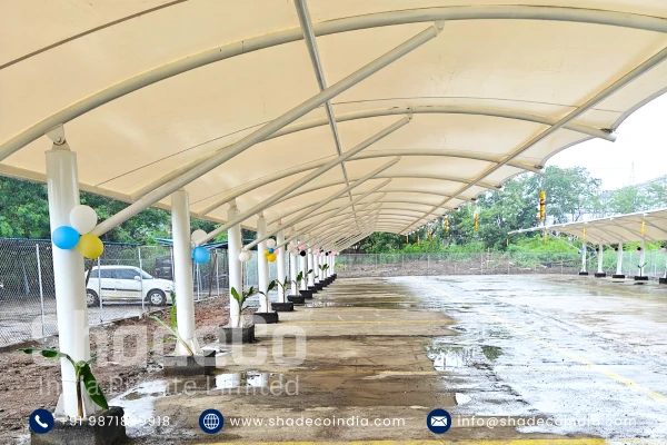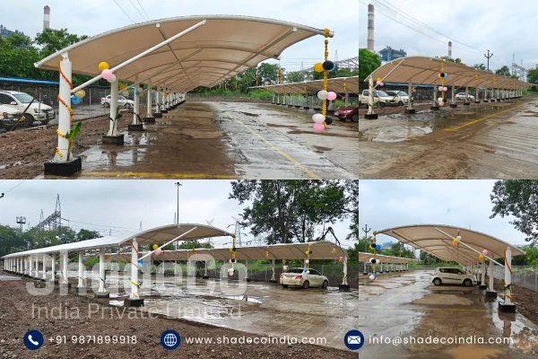 ShadeCo executed a Tensile Structure Vehicle Parking Shade project at Thermal Power Station, Bhusawal, Maharashtra, providing a robust and efficient shading solution for vehicle parking areas within the industrial facility. The project was designed to protect vehicles from harsh sunlight, rain, and environmental exposure while maintaining a clean and organized parking layout.